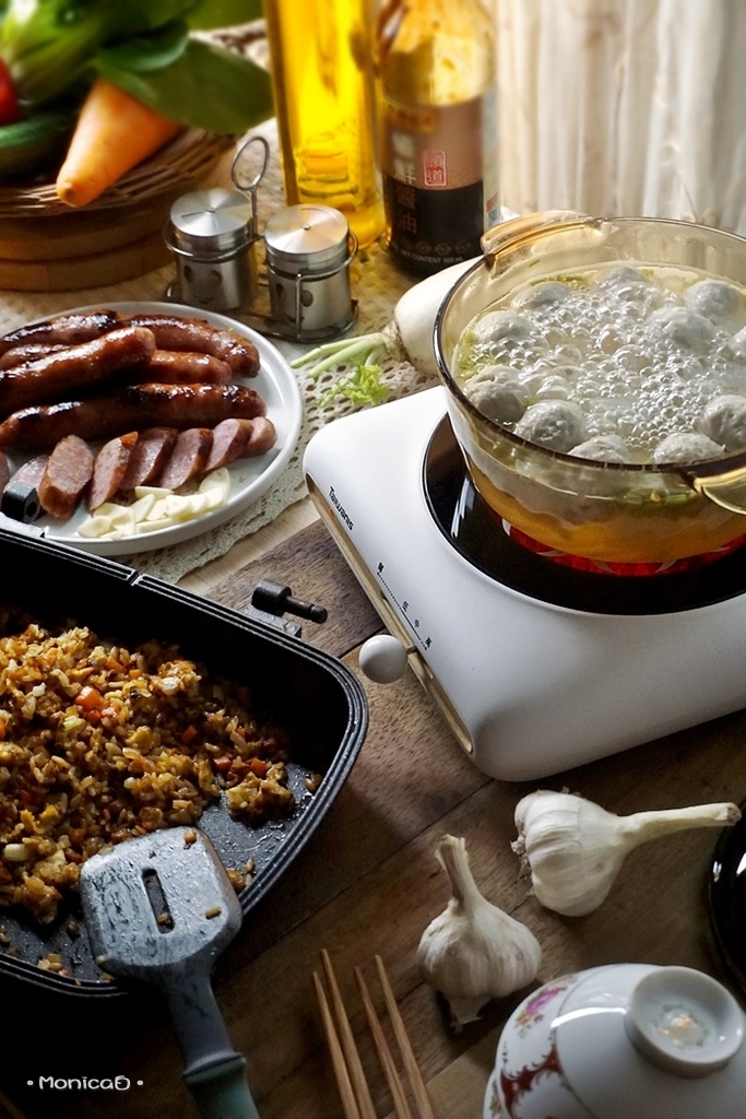 呷炒飯喝熱湯真幸福啊~,和家人齊聚大快朵頤,即享家常美味料理,飽餐一頓後續維護工作免煩惱,黑晶面板不容易卡垢,濕布輕擦拭好清潔,就這樣日復日,愛上自煮的生活樂趣。